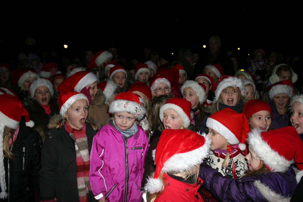 Det var tett av folk i desembermørket, men koret taklet kaoset veldig bra og leverte vakker julesang!
